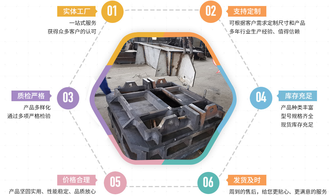 主要產(chǎn)品有:鋼筋壓塊,廢舊剪切料、礦山及水泥機械配件、鐵路機械及工務配件、電解鉛陽極板、母模、粗銅模、陽極模、渣包等。